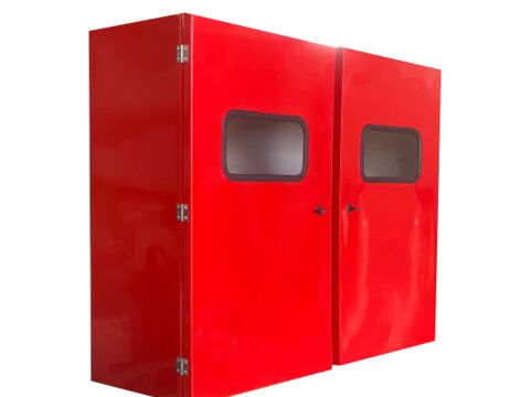 Fabricado em resina de poliéster com resistência a Raios UV e retardam-te à chama, ampla estabilidade térmica, impermeável, borrachas de vedação em EPDM, pintura em poliuretano na cor vermelha.
