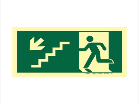 PLACA SAIDA ESCADA SETA ESQUERDA P BAIXO 12 X 24CM PVC 2MM PP0552 S9
