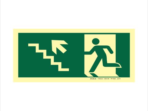 Home / Produtos / Sinalizações / PLACA SAIDA ESCADA SETA ESQUERDA P CIMA 12 X 24CM PVC 2MM PP0548 S10
