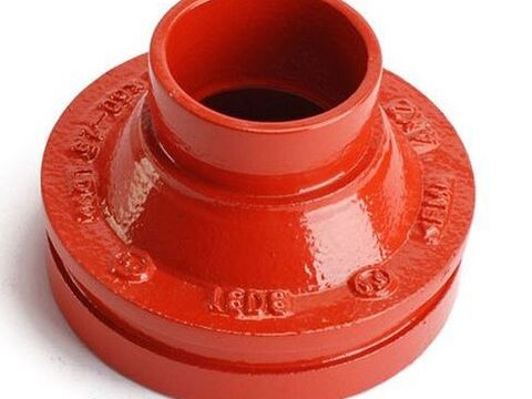 A redução concêntrica ranhurada é fabricada em ferro fundido ductil, usada para conectar tubos maiores com tubos menores.